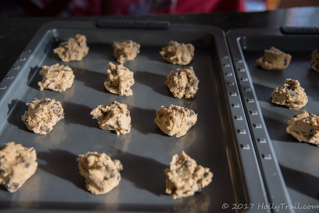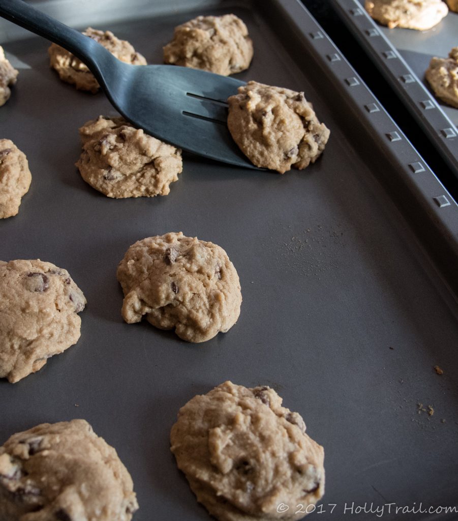 I used a rounded soup spoon full of dough to drop the dough onto ungreased cookie sheets. I fit 12 on each sheet and used four sheets.