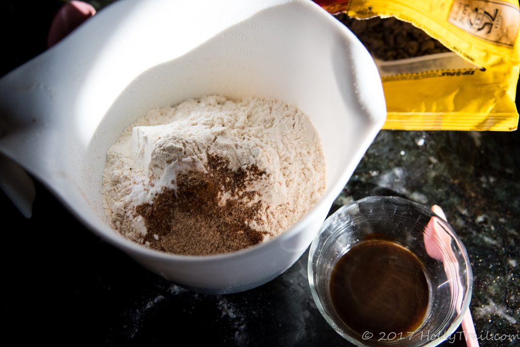 This cookie is made basically the same as regular chocolate chip cookies, except that I added in some instant coffee and a few spices. First, I dissolved the instant coffee in some boiling water. I also got my flour/spice mixture ready to go.