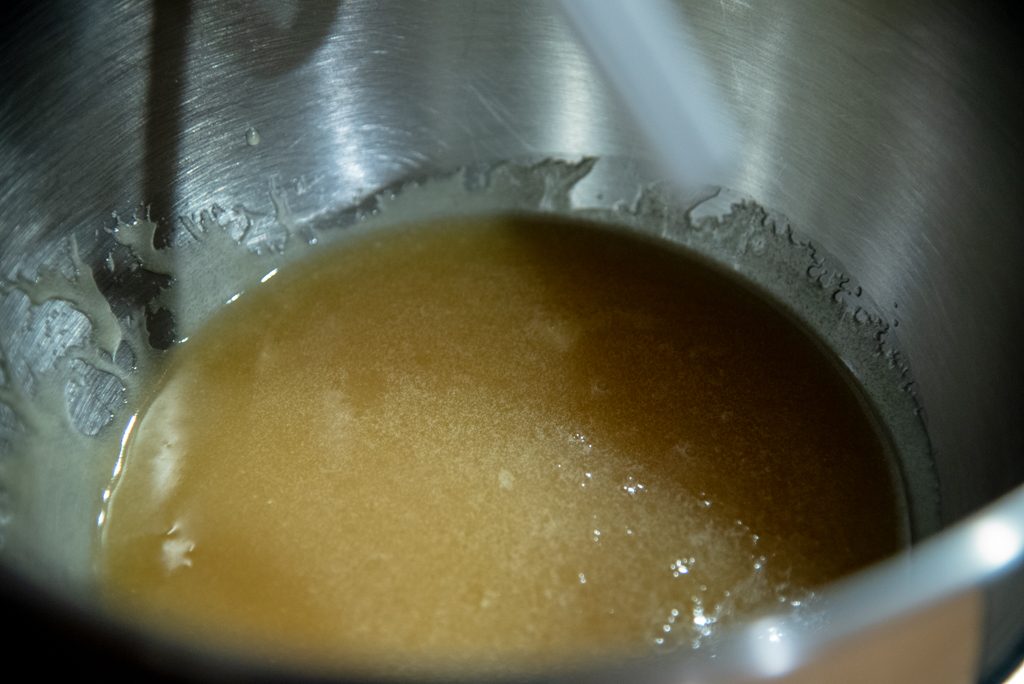 Transfer the cooled honey mixture to the bowl of an electric mixer.