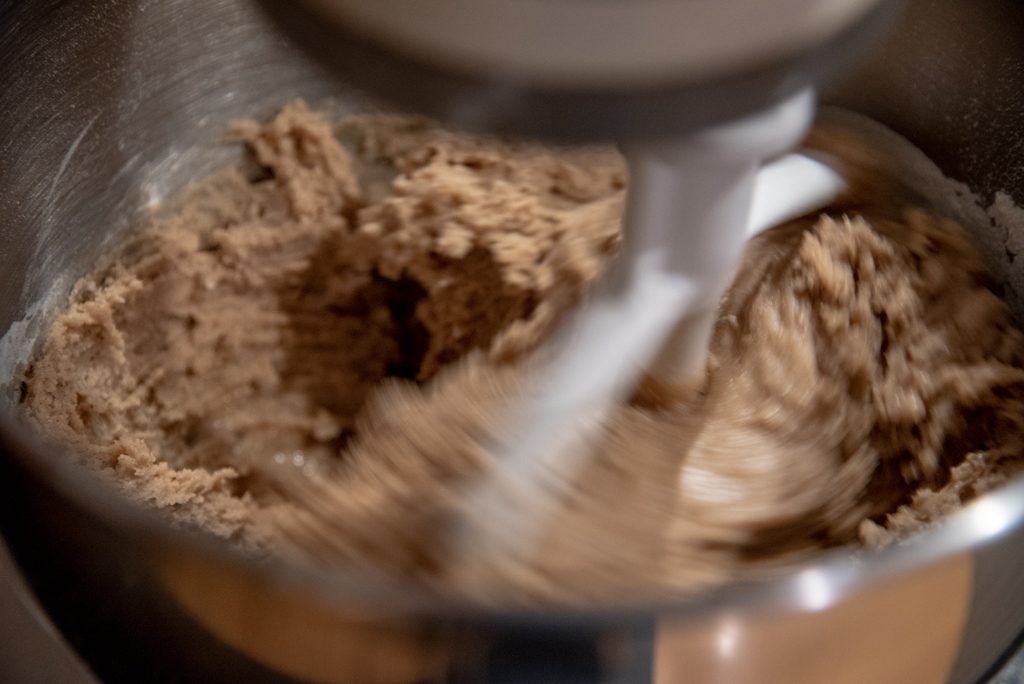 - Preheat oven to 350°F/180°C. Line cookie sheets (4) with parchment paper, Silpat, or lightly grease. In a large bowl, whisk together flour, baking soda, salt, sifted cocoa powder, and spices. (You may also sift all ingredients together.)