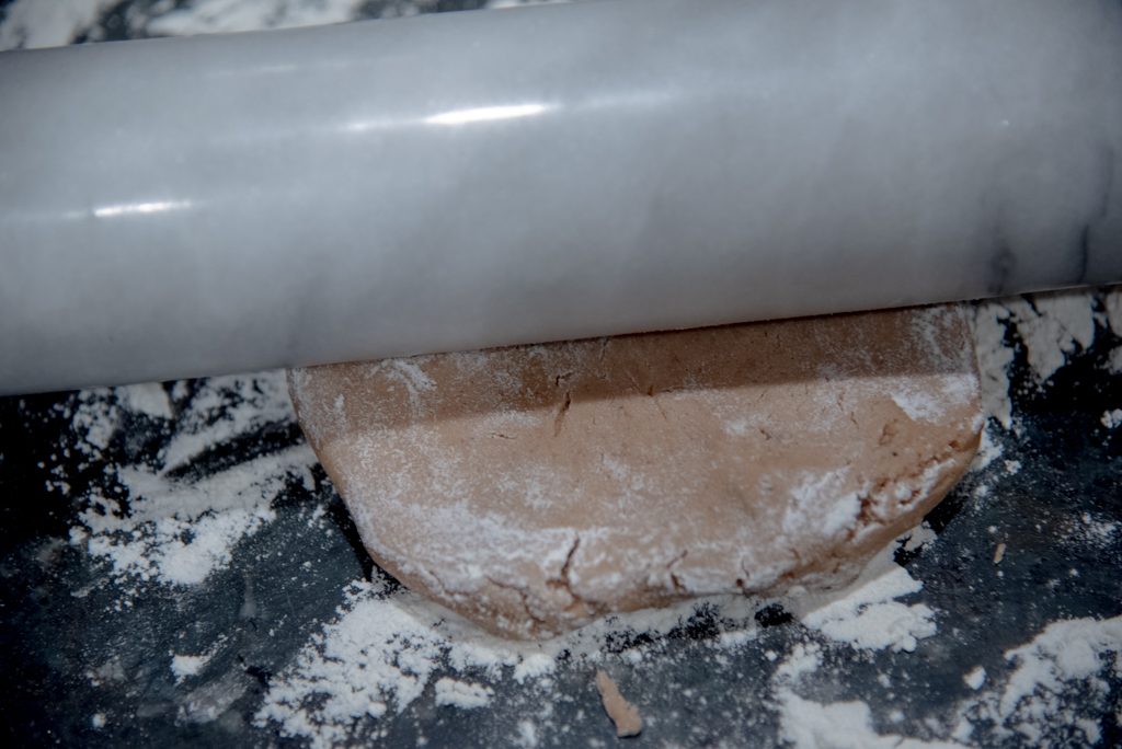 Lightly flour your work surface again and roll out the dough to 5mm or 1/4 inch thick.